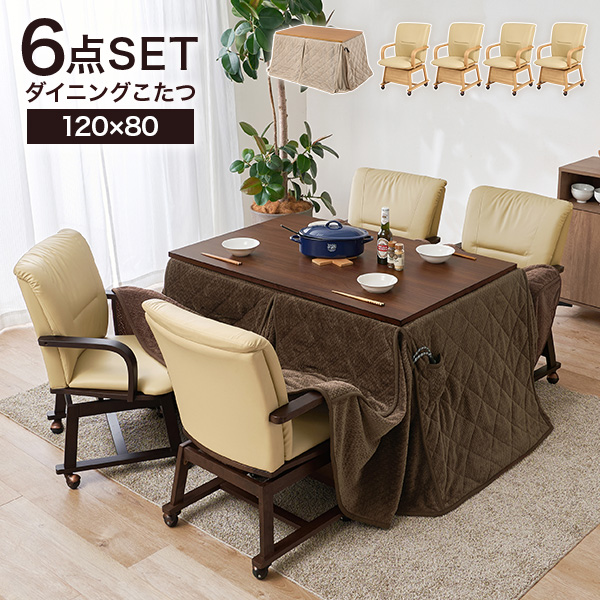 ダイニングこたつテーブル「シェルタ」の6点セット。