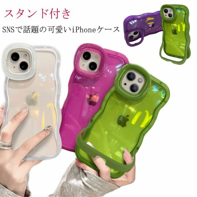 クリアケース 透明 ケース 透明ケース スマホケース 韓国 クリア iPhoneケース うねうね なみなみ iphone15 plus iphone15pro max iphone14 スタンド付き 韓国 シリコン 耐衝撃 かわいい スマホケース ウェーブ クリアケース 送料無料