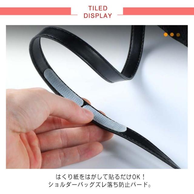 | ショルダーバッグやカメラケース等の肩からのずれ下がりを防ぎます。 はくり紙をはがして貼るだけOK!ショルダーバッグズレ落ち防止パード。 滑り止め付だから、かがんでもずれません。ベルトのずれも防ぎます。 ゴムとは違うシリコンタイプ。カットすることもできます。 | |