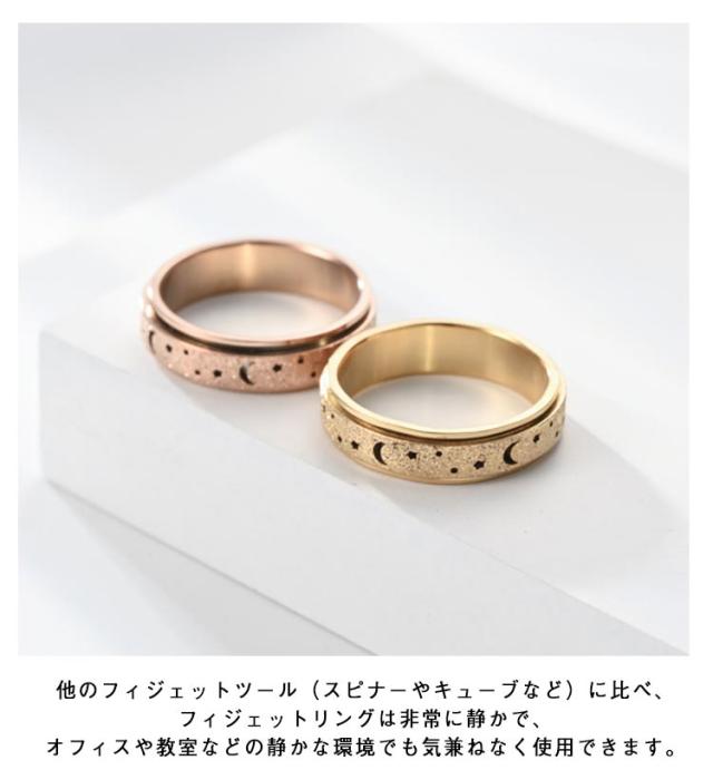 2個セット!ストレス解消 指輪 ステンレス フィジェットリング ストレス解消リング 不安 緩和 癖対策 リラックス サイズ調節可能 フィジェットトイ ゴールド 不安を和らげるリング レディース メンズ ギフト リング 不安リング