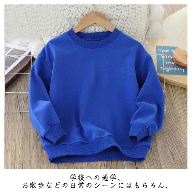 シンプル トレーナー スウェット クルーネック 子供 こども 子供服 ユニセックス 男の子 ボーイズ 女の子 ガールズ トップス 長袖 無地 裏毛 韓国子供服 運動着 普段着 薄手 ルームウェア 部屋着