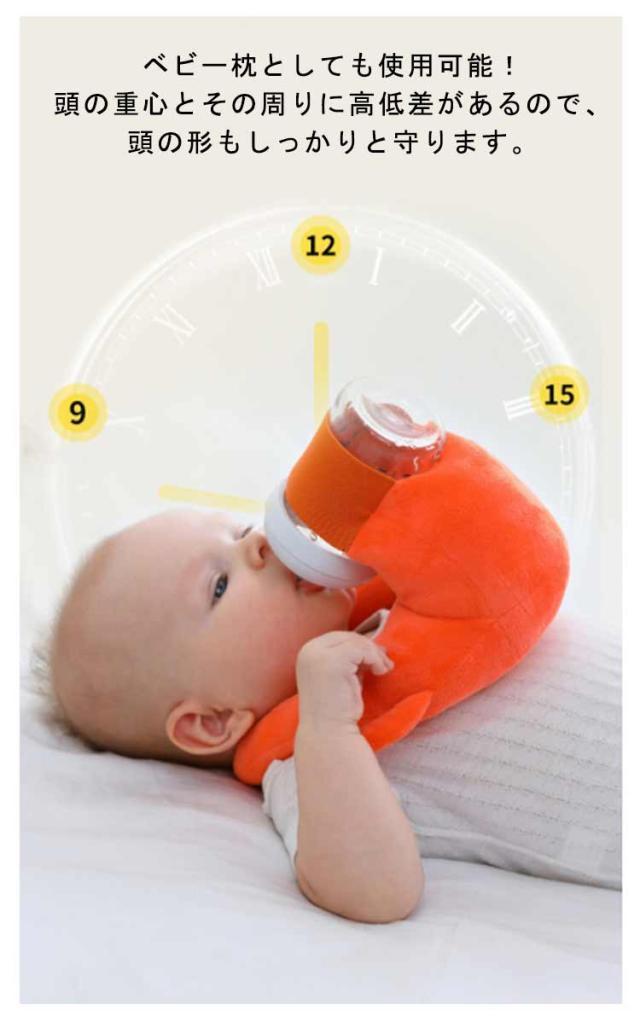 | 赤ちゃんとの授乳時間をより快適に!ミルクセルフ飲み枕です。 哺乳瓶が固定できるホルダー付きで、ミルクを一人で飲んでくれるだけで助かる! 柔らかな生地を採用しており、敏感な赤ちゃんの肌にも安心です。 このハンズフリークッションでミルクを支える必要がなくなり、手首への負担を大幅に減らすことができます。 スナップボタンで簡単に調整できるため、赤ちゃんの体型にぴったりフィットし、成長に合わせて長く使用することができます。 ベビー枕としても使用可能!頭の重心とその周りに高低差があるので、頭の形もしっかりと守ります。 洗濯機で丸洗いが可能なため、いつでも清潔に使えます。 二人同時にミルクをあげることができるため、育児の効率が格段に向上します。 | |