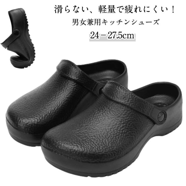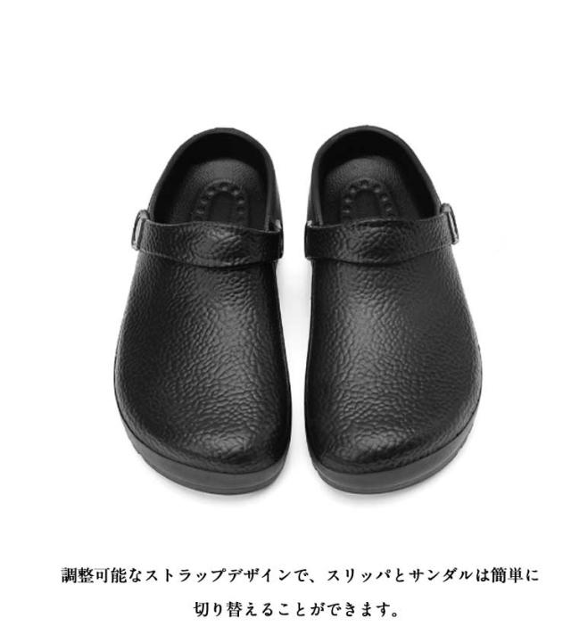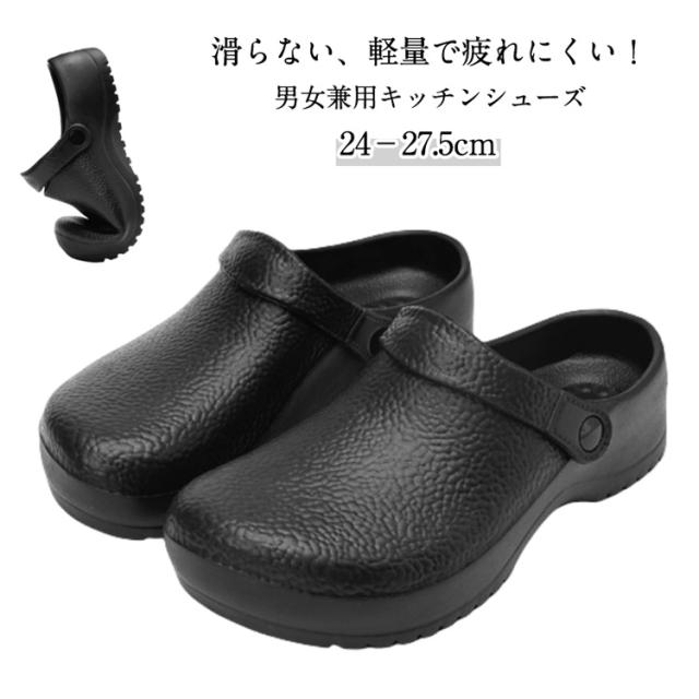 キッチンシューズ 作業靴 サンダル メンズ 外履き コックシューズ 厨房用 2way 滑らない ガーデン シューズ 軽量 耐摩耗性 厨房 医療 工場用 ホテル用 疲れにくい 大きサイズ 黒 24 24.5 25 25.5 26 26.5 27 27.5cm 送料無料