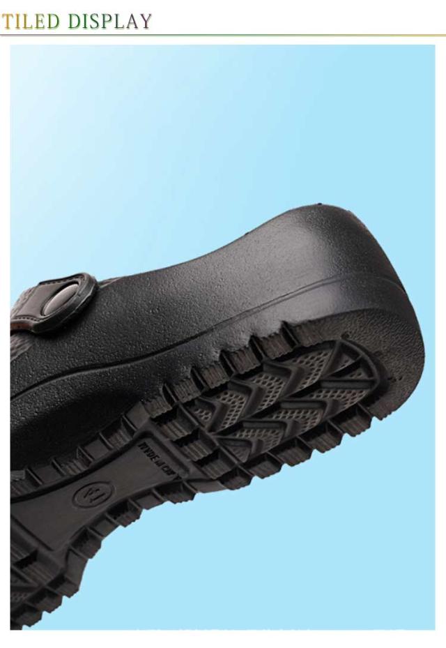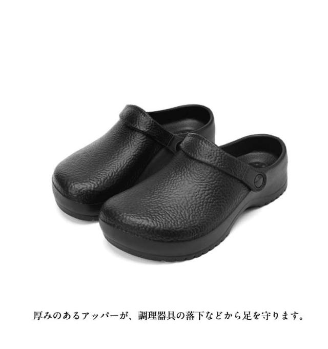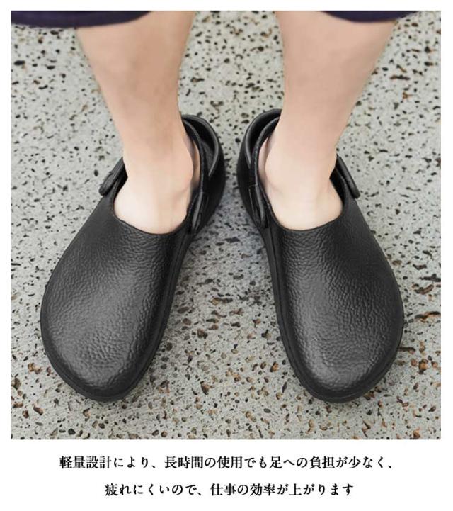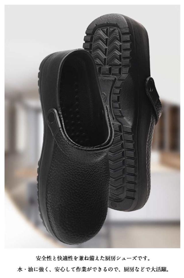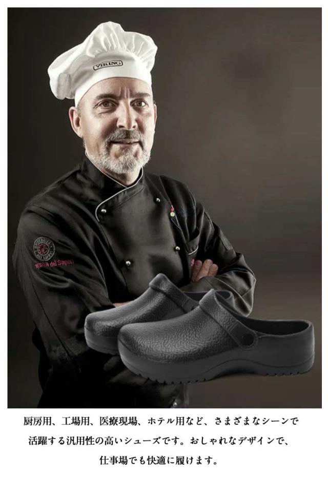 | 【滑らない、軽量で疲れにくい!】【男女兼用キッチンシューズ】【24−27.5cm】 安全性と快適性を兼ね備えた厨房シューズです。 水・油に強く、安心して作業ができるので、厨房などで大活躍。 厚みのあるアッパーが、調理器具の落下などから足を守ります。 調整可能なストラップデザインで、スリッパとサンダルは簡単に切り替えることができます。 軽量設計により、長時間の使用でも足への負担が少なく、疲れにくいので、仕事の効率が上がります 24cmから27.5cmまでの幅広いサイズ展開があり、大きいサイズにも対応しています。 厨房用、工場用、医療現場、ホテル用など、さまざまなシーンで活躍する汎用性の高いシューズです。おしゃれなデザインで、仕事場でも快適に履けます。 | |