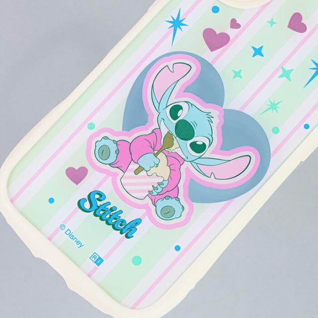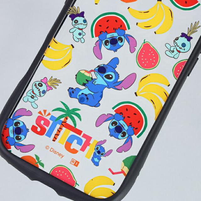 スティッチがのんびり南国で楽しんでいる様子を表現したデザインと、衝撃に強い安心感を兼ね備えたハイブリッドケース。