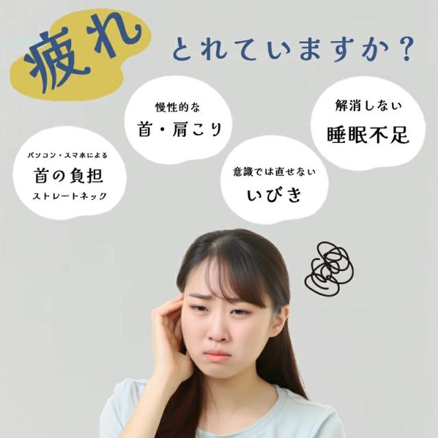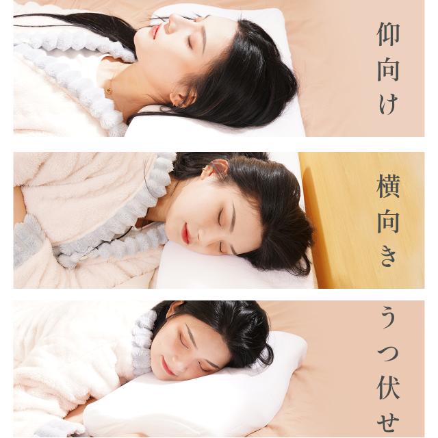 首・肩にフィットする独自構造で、横向き・仰向け・うつぶせ、どんな姿勢でもしっかり安定。