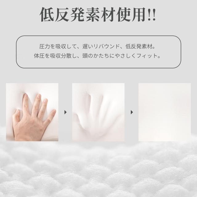 しっとりした弾力のある低反発ウレタンが、頭圧をやさしく分散。絶妙なバランスで体への負担を軽減します。