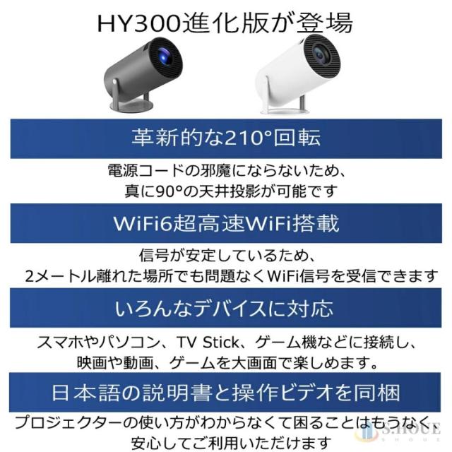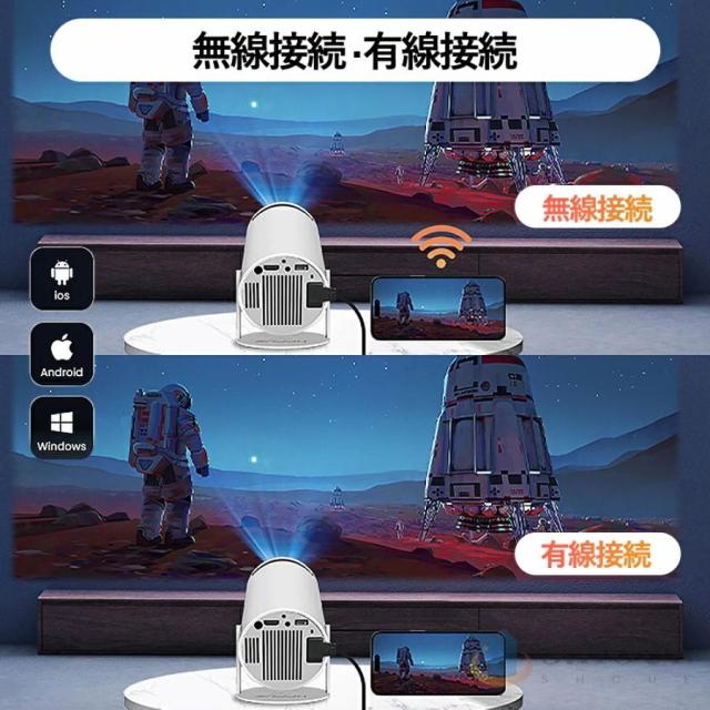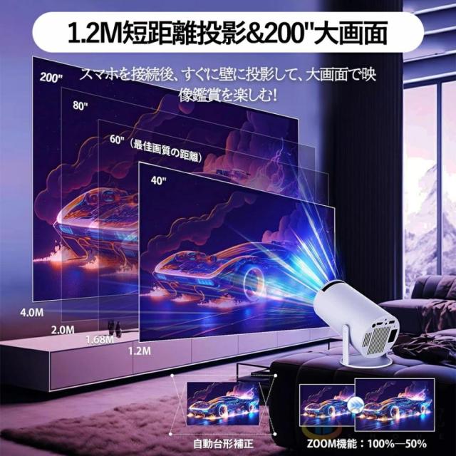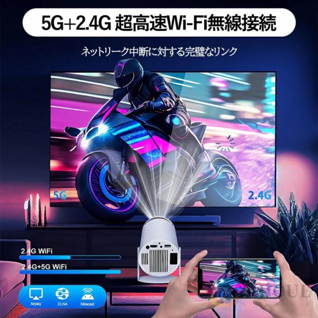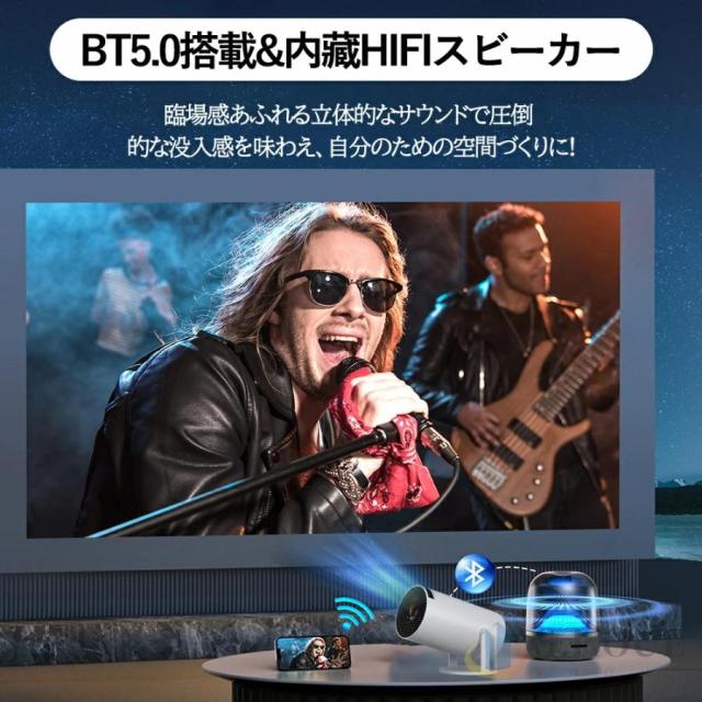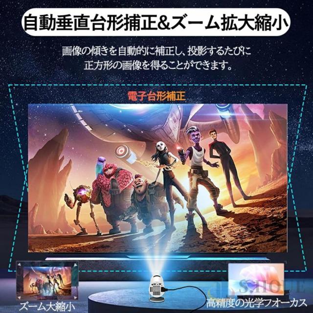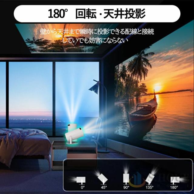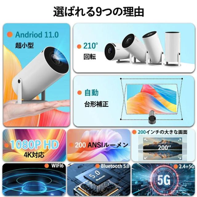 プロジェクター 小型 家庭用 AndroidTV 11.0 2.4/5G Wi-Fi対応 Bluetooth 5.2 天井投影 小型 210°回転 自動台形補正 短距離投影 4Kビデオに適応す DMIケーブル