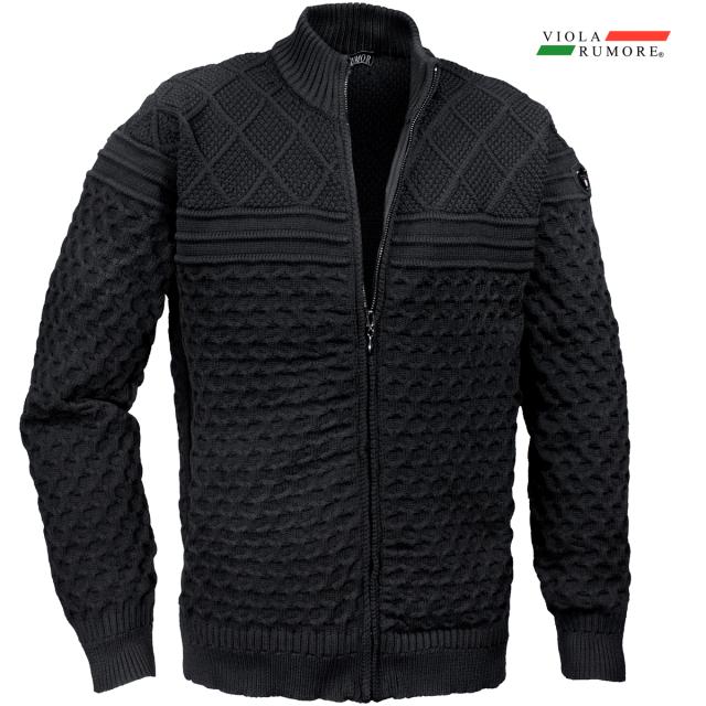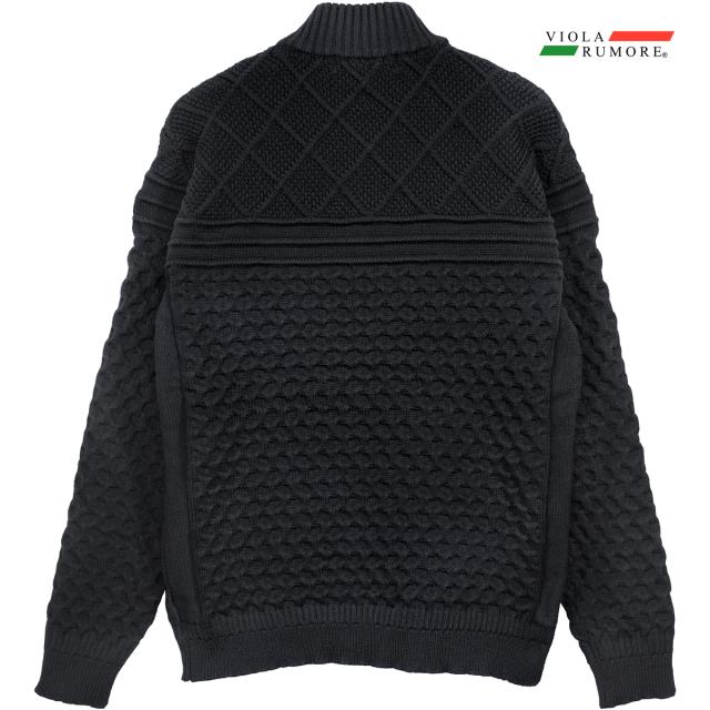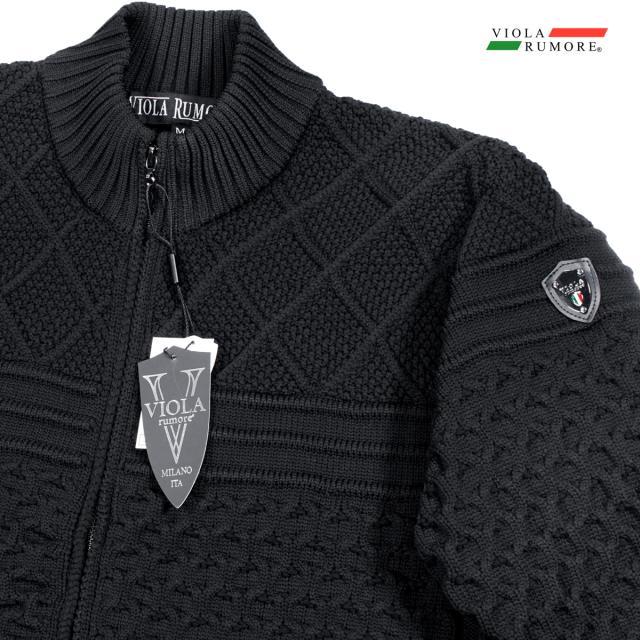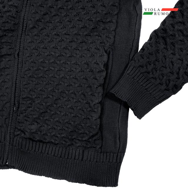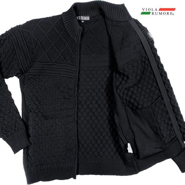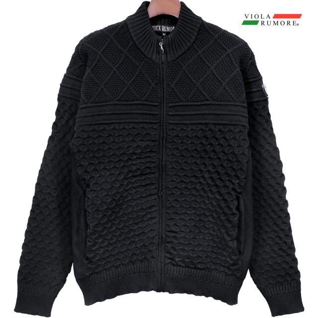 VIOLA rumore ヴィオラ ビオラ ニット フルジップアップ ケーブル編み メンズ ライトアウター ニットジャケット(ブラック黒) 62129