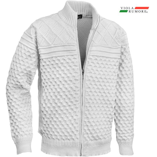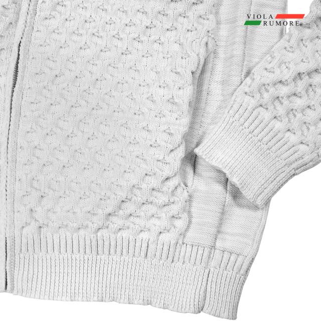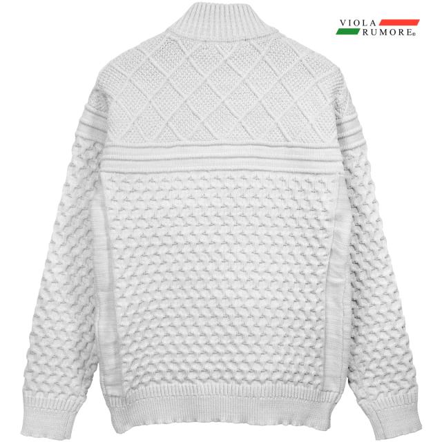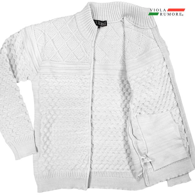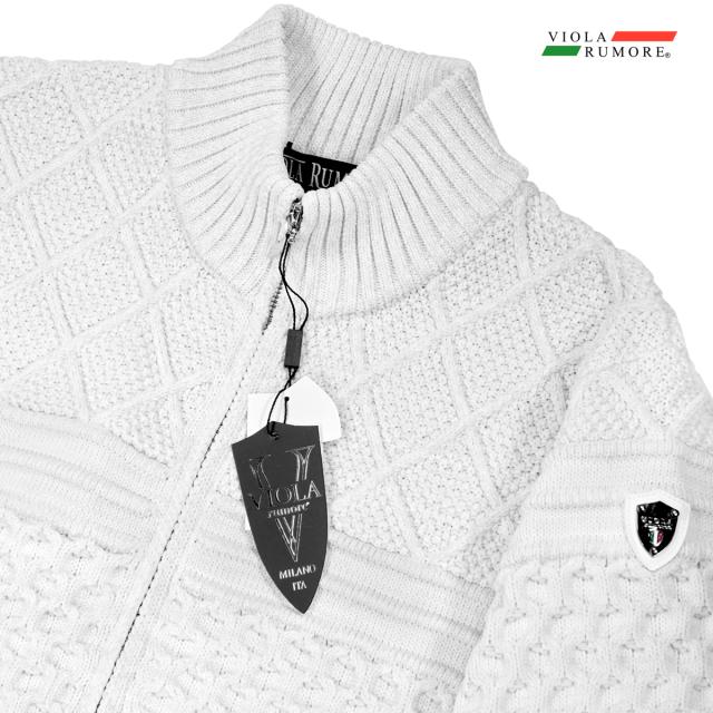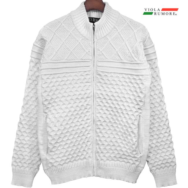VIOLA rumore ヴィオラ ビオラ ニット フルジップアップ ケーブル編み メンズ ライトアウター ニットジャケット(ホワイト白) 62129