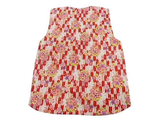 ちゃんちゃんこ 子供 日本製 キッズ 女の子 はんてん 半天 半纏 中綿 パッチワーク かわいい made in japan ポンチョ 和柄 ベビー 部屋着 女児 幼児 園児 小学生 赤ちゃん 赤地 矢絣 花輪 No.80