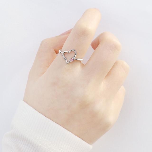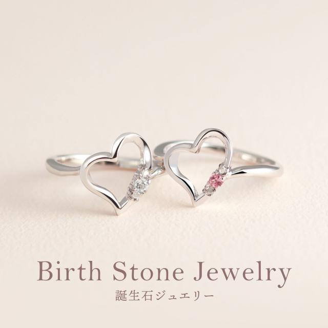 ネックレスで人気の“オープンハート+誕生石+ダイヤモンド”のデザインを、指元にも映える指輪仕様に再構築しました。