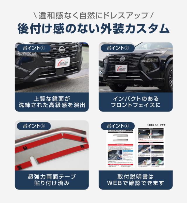 新型エクストレイルT33系専用のフロントマスク下部のロアグリル部に装着するカスタムパーツです。