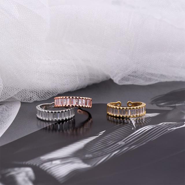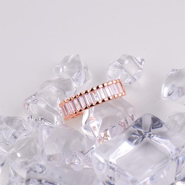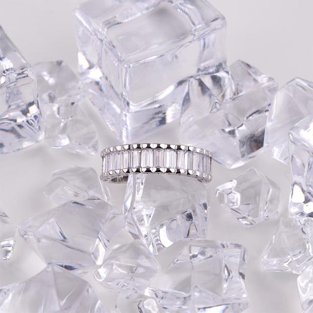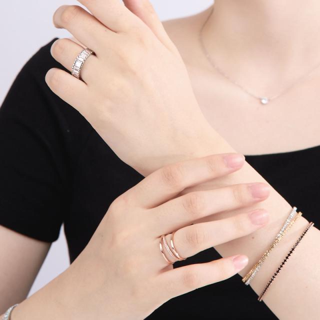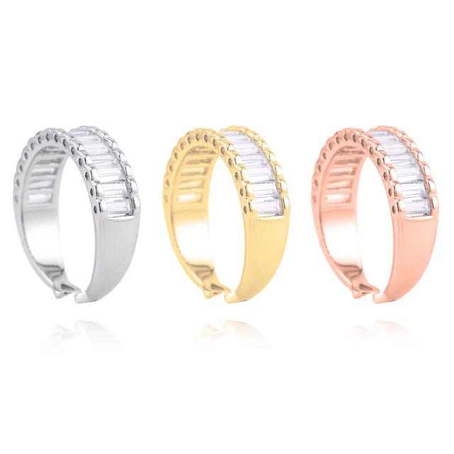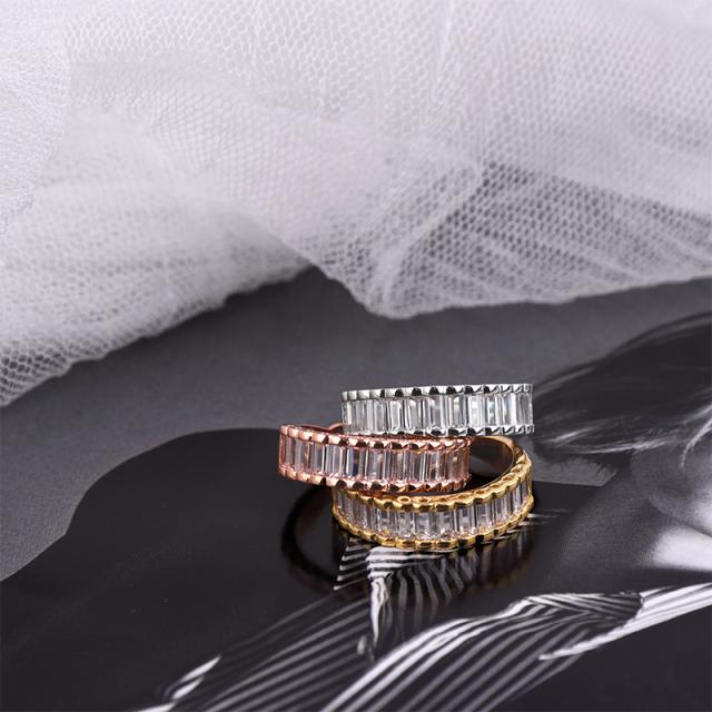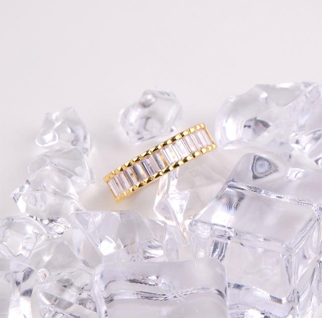 繊細に並ぶバゲットカットの輝きが、指先にモダンな気品を添えるデザインリング。