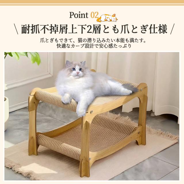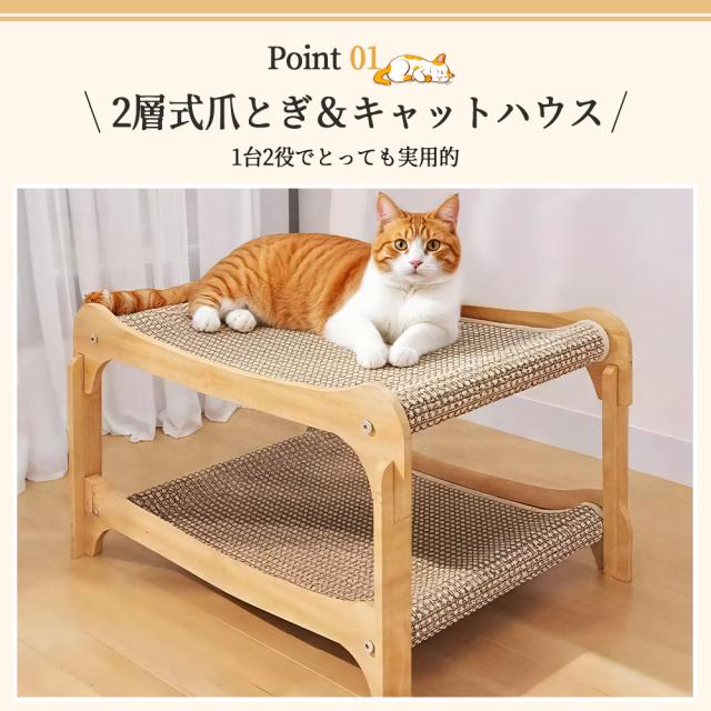 猫爪とぎ 2段 キャットハウス 爪とぎ付き 可愛い ベッド 耐荷重15kg 大きい猫 対応 省スペース 猫のおもちゃ にゃんにゃん くつろぎ ペット用品 おしゃれ 遊ぶ