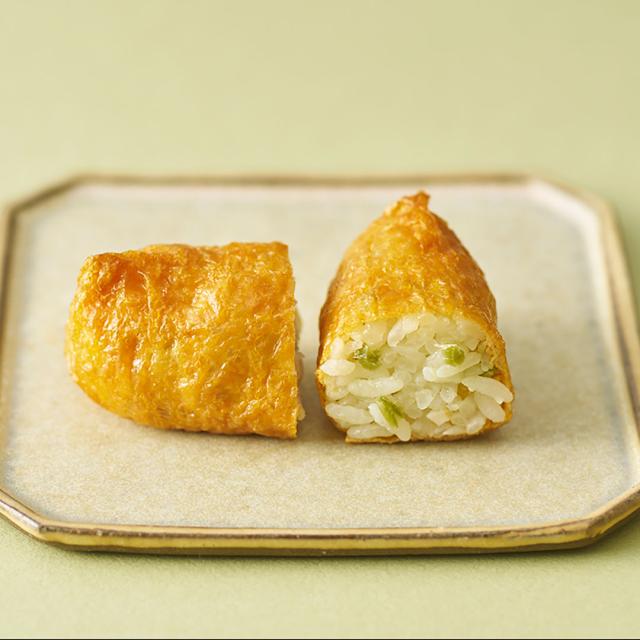 ワサビの香りが鼻を抜ける、甘さと辛さのバランスが取れたいなりずし。