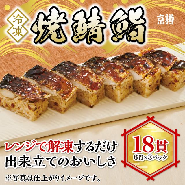 【京樽】冷凍 焼鯖鮨(6貫入×3パック) (焼さば寿司 焼鯖 焼サバ 寿司 冷凍食品 押し寿司 サバ さば 和食)【※北海道、沖縄・離島は別途送料】
