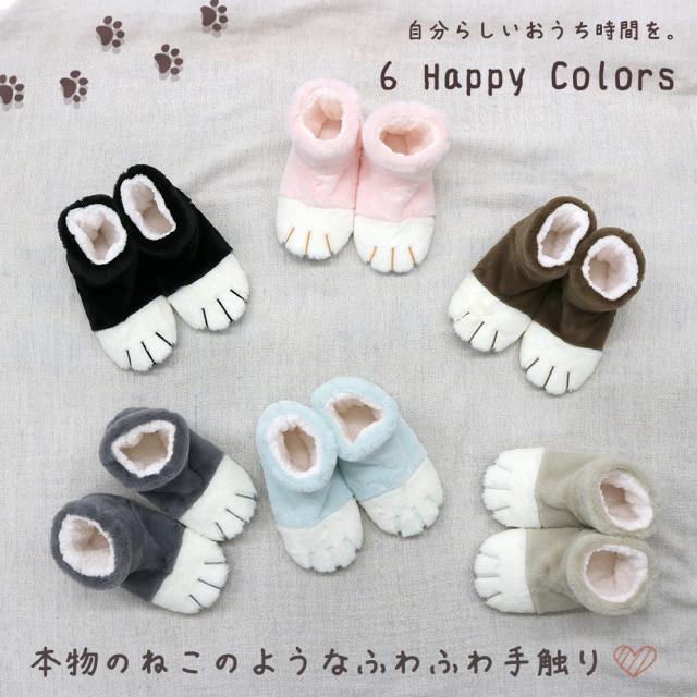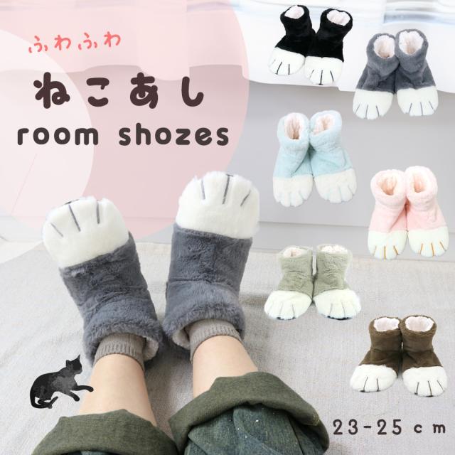 ねこのあし レディース ルームシューズ 無地 あったか スリッパ ふわふわ 全6色 ギフト プレゼント