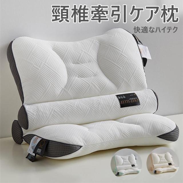 - 頚椎サポート枕はハイテク牽引ケアで首こりやストレートネックを改善。横向き寝でも安定し、快眠へと導いてくれます。