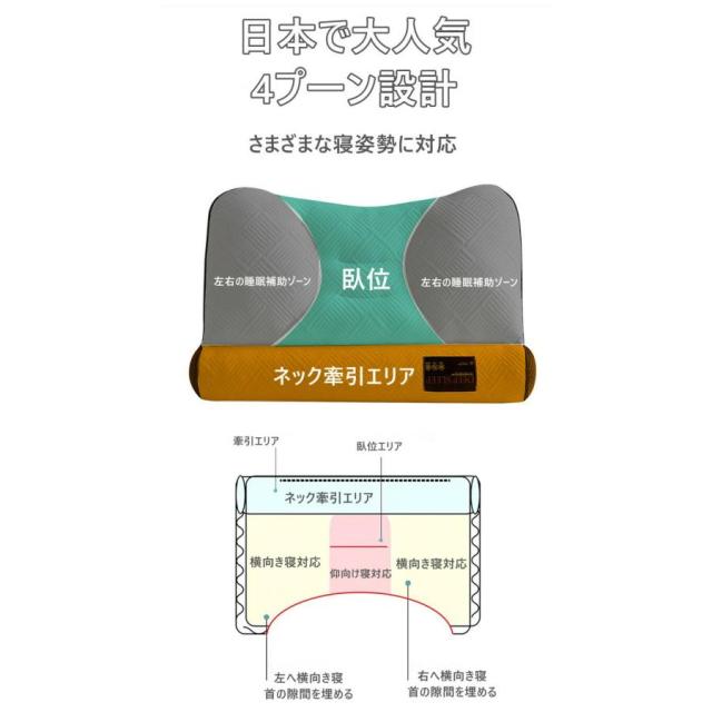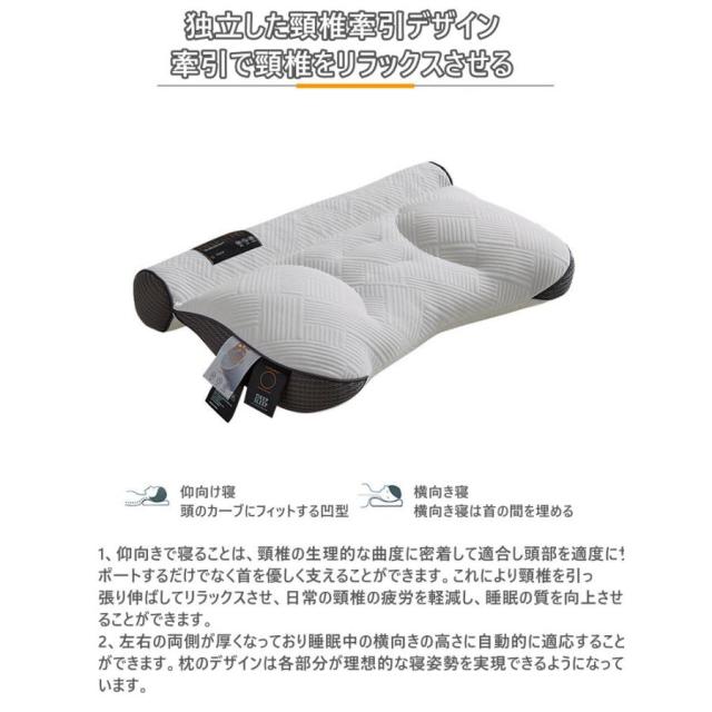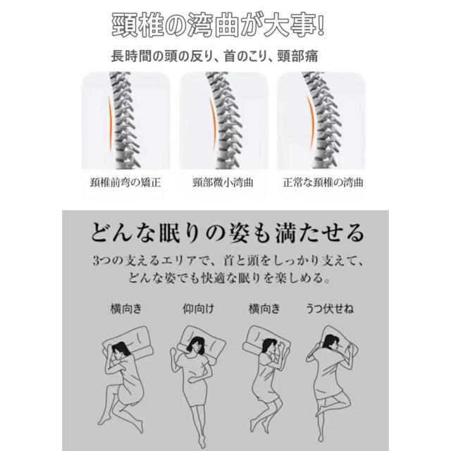- ハイテク頚椎サポート枕、横向き寝にも対応、肩こりやストレートネック改善で快眠をサポート。