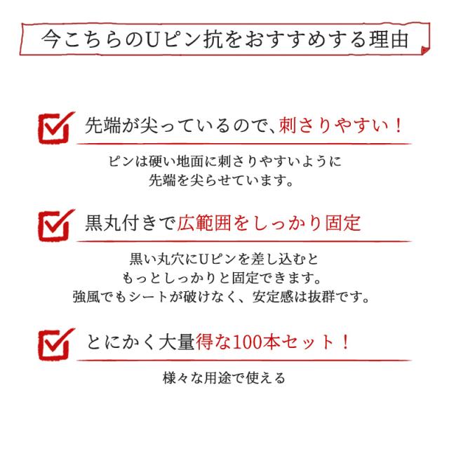 防草シート ピン Uピン杭 黒丸付 固定ピン 除草シート 100本 防草しーと 防そうシート 固定用 人工芝 おさえピン 押さえピ