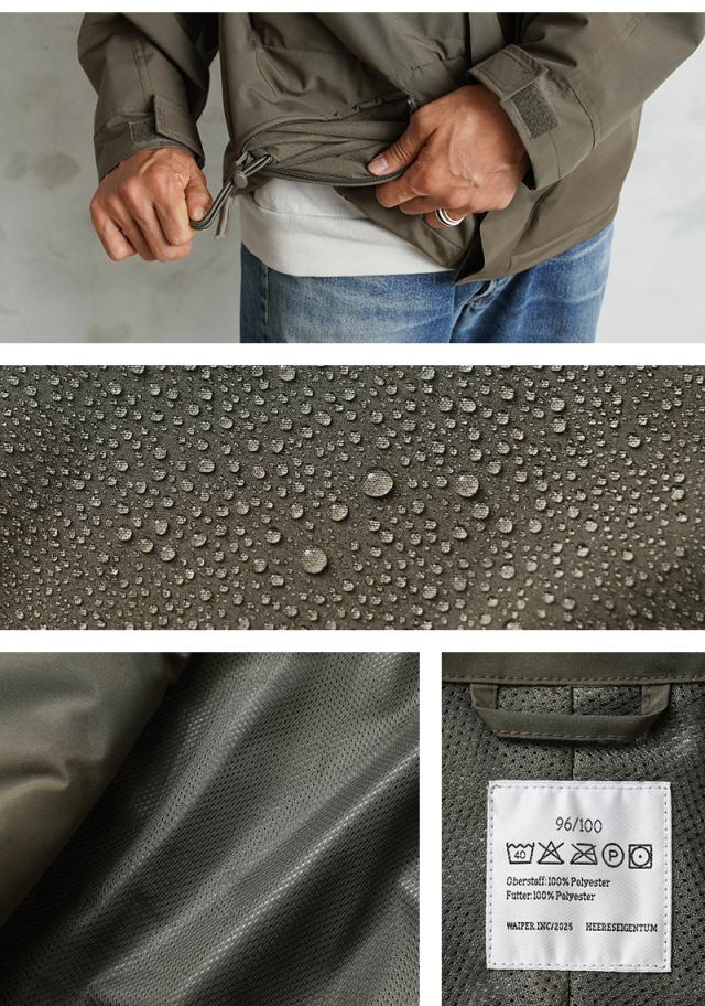 | 商品説明 | WAIPER.inc オーストリア軍 パラトルーパージャケット PERTEX UNLIMITEDのご紹介です。 品番:WP1136 オーストリア陸軍の空挺部隊に所属する兵士向けに設計されたフィールドジャケットを、WAIPER.incが高機能素材を用いて再構築しました。 パラトルーパーにとって不可欠な機能性を備えながら、数あるフィールドジャケットの中でもファッション性に優れたユニークなデザインが特徴です。 素材には、英国発の高機能ファブリック“PERTEX UNLIMITED(パーテックス・アンリミテッド)”を採用。 高い防風・防水性能と優れた透湿性を併せ持ち、雨や風、寒さから身体を確実に保護します。縫製部にはシームテープによる防水処理を施し、悪天候下でも快適な着心地をキープ。レインウェアとしても十分なスペックを誇ります。 内側にはメッシュの裏地を配し、蒸れやベタつきを軽減。さらにポケット内にはトリコットの裏地を採用し、ハンドウォーマーとしても機能します。 胸部には階級章や部隊章を装着できるループを備え、両サイドにジッパー開閉式の胸ポケットを配置。サイドポケットにもファスナーを設け、荷物の落下を防ぐ構造になっています。 フロントは本来ボタンフライ仕様ですが、素材変更に合わせてベルクロ開閉にアップデートし、よりスムーズな着脱を実現しました。 裾のドローコードはポケット内からワンタッチで調整可能。 ミリタリーの実用性を踏襲しつつ、現代的な快適性を加えた仕様となっています。 独特のオリーブとブラウンが混ざったようなオーストリア軍特有のカラーは、味わい深く無骨な印象。 さらに使い勝手を考慮したブラックも展開し、どちらも異なる魅力を放ちます。 WAIPERが自信をもってお届けする、機能美とミリタリーの美学を融合させた一着です。 | |||||||||||||||||||||||||