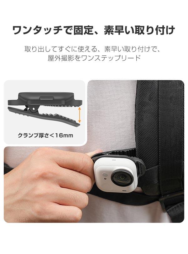 Insta360 GO Ultra バックパックマウント 強力クランプ 縦横撮影モード切り替え 磁気吸着 バッグベルト固定スポーツ 強力クランプ クイックインストール バックパッククリップ スポーツカメラアクセサリー 多様な使用シーン 簡単設置 人気 実用 撮影 POV撮影必要