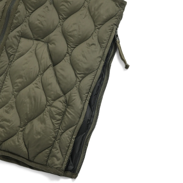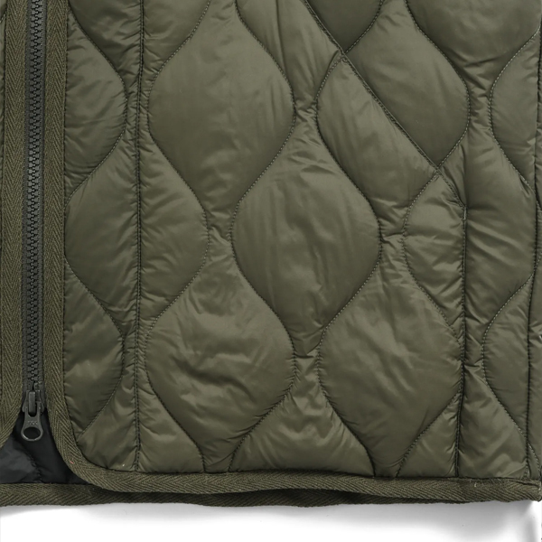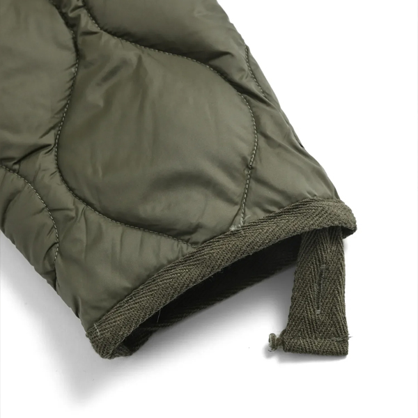ヘチマキルトのダウンステッチが、ミリタリー感を演出。