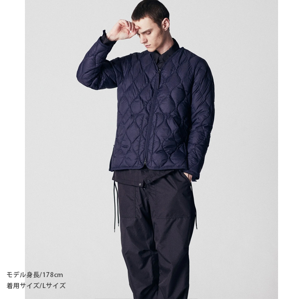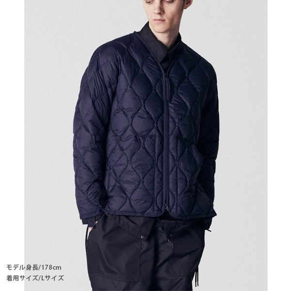 軽くて柔らかな生地を使用し、保温性に優れた800FPのダウンを採用。 ヘチマキルトのダウンステッチが、ミリタリー感を演出。 上下から開閉できるWジップファスナーは、スリットのように開き加減を調整できます。 また、両脇のスリットは、可動域が増え動きやすさをサポートし、 ボトムのポケットに手も入れやすく、重ね着を楽しんでいただける仕様としました。 軽くて暖かく柔らかい、ミリタリーテイストのダウンウェアです。 同シリーズ(MILITARY LINE)のダウンパンツやダウンマフラーなどと合わせていただくこともお勧めします。 | |||||