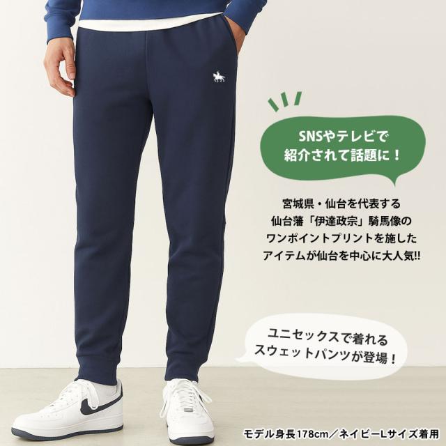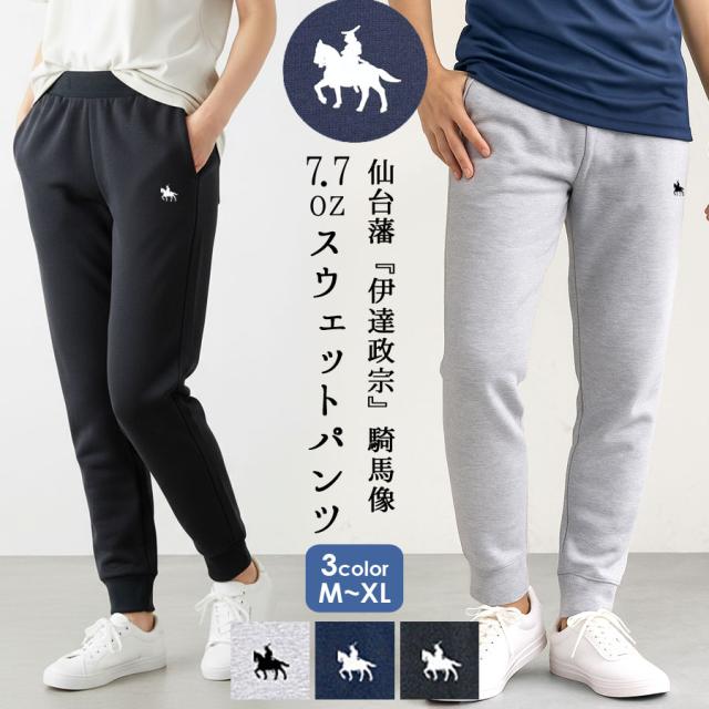 スウェットパンツ 伊達政宗 レディース メンズ 綿混 厚手 仙台藩 騎馬像 ワンポイント プリント ジョガーパンツ テーパード ボトムス 裾リブ 7.7oz 吸汗 速乾 ストレッチ 伸縮性 スポーツ カジュアル ジャージ (toms00343)
