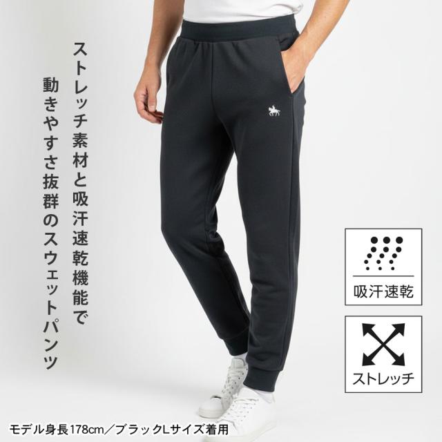 ストレッチ素材と吸汗速乾機能で動きやすさ抜群のスウェットパンツ。