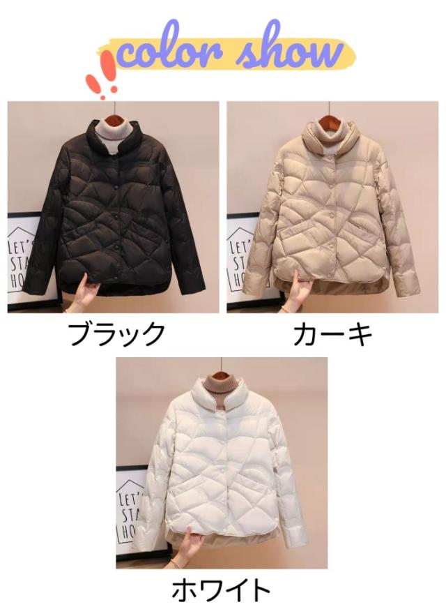 ダウンジャケット レディース 大きいサイズ 長袖 ダウンコート ショート アウター ジャケット ポケット付き 薄手 冬新作