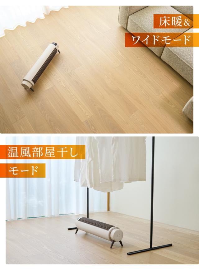 | 寝っころがりたくなるフローリングに!冬の部屋干しも助ける”どこでも床暖” 好きな場所に置くだけで広範囲に足元のあたためが可能。 一般的なヒーターの送風口が16〜18cmなのに対し、 本製品の送風口は約34cmの広め設計により、温風が足元をそっと包み込みます。 また、上向き中心にスイングする「衣類モード」も搭載。 洗濯物の直下からの温風で衣類乾燥の効率がアップします。 フィルターは水洗いできて、お手入れ簡単。 6時間自動電源オフ、チャイルドロック、転倒時自動オフなど、小さなお子様やペットがいるご家庭でも安心してご使用いただける機能が充実。 |