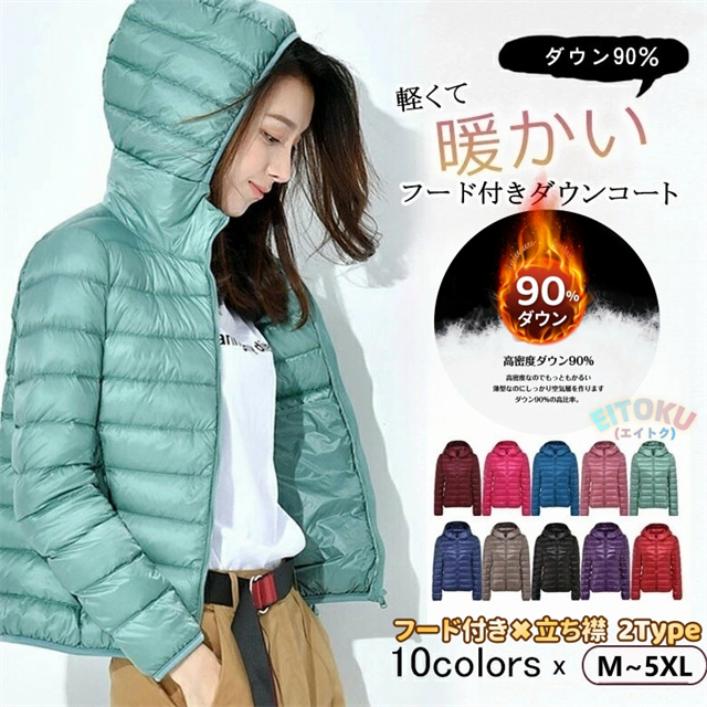 90%ダウン!超軽量 ダウンコート ダウンジャケット レディース フード付き 立ち襟 2Type レディース ダウン コート きれいめ 細見え ライトダウン ショート丈 暖かい 防寒 薄手 秋冬 羽織り コンパクト 大人 可愛い 大きいサイズ 体型カバー 通勤