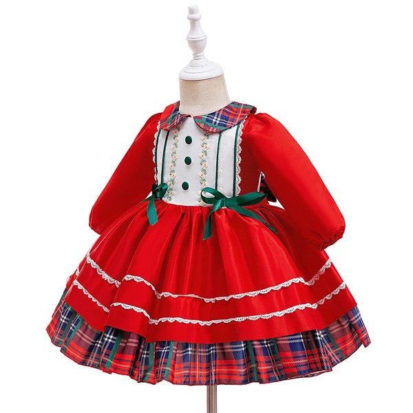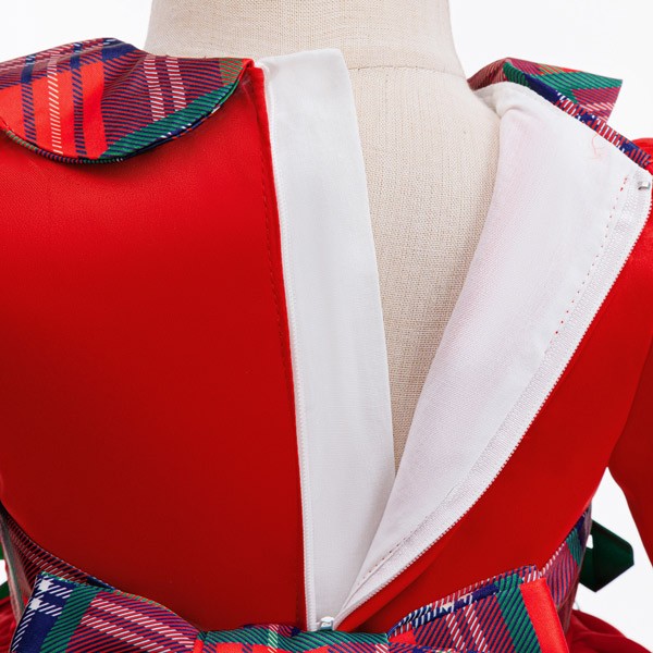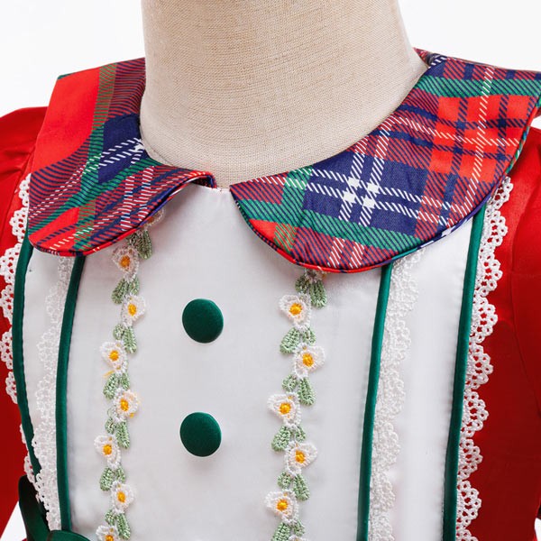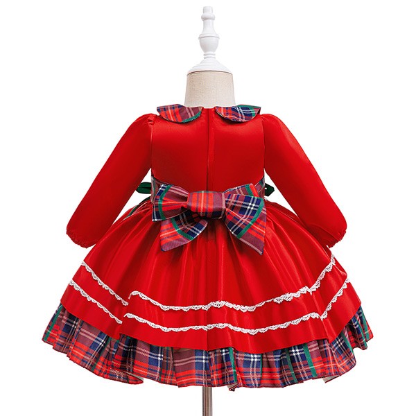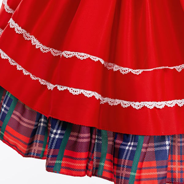 キッズワンピース チェック柄 クリスマス風 ロリータ リボン ワンピース ショート丈 ミニ 長袖 秋冬 コスチューム衣装 子供 パーティードレス カラードレス ワンピース お姫様 女の子 子供 かわいい ステージ 演出 誕生日 イベント 写真用 レッド グリーン 70 80 90 100 110