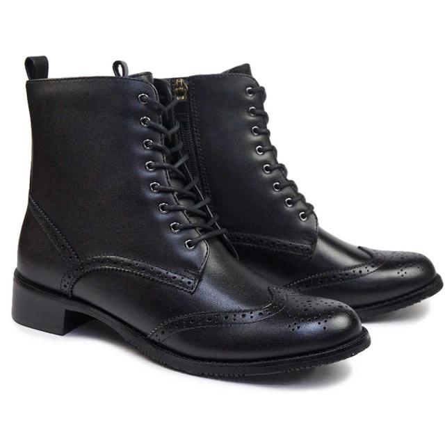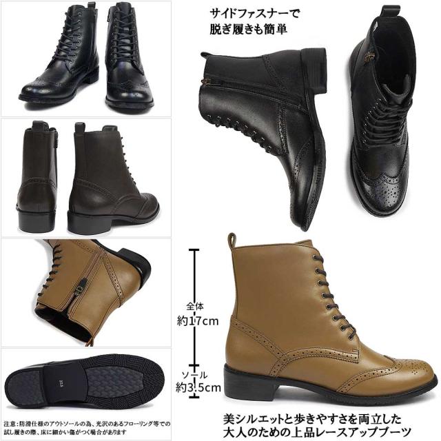 黒 茶 レースアップ メダリオン トラッド 35mmヒール レディースブーツ レースアップブーツ 脱ぎ履き簡単 履きやすい 歩きやすい きれいめ 上品 快適 通勤 お出かけ 旅行 ギフト プレゼント 贈り物 クリスマス