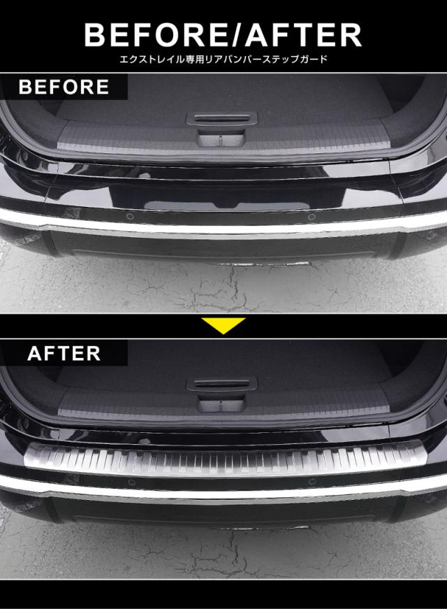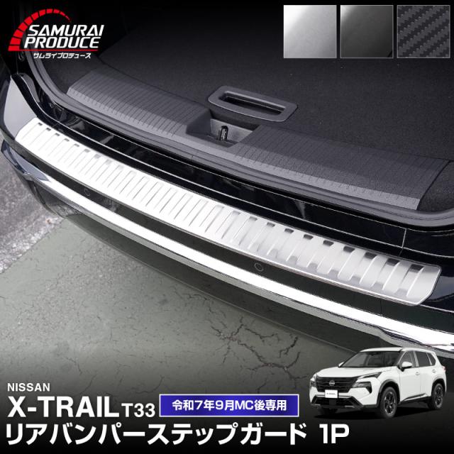 【予約/カーボン調:5月30日頃入荷予定】新型エクストレイル T33 リアバンパーステップガード 1P 車体保護ゴム付き 2025年9月マイナーチェンジ後対応 選べる3色 シルバーヘアライン ブラックヘアライン カーボン調