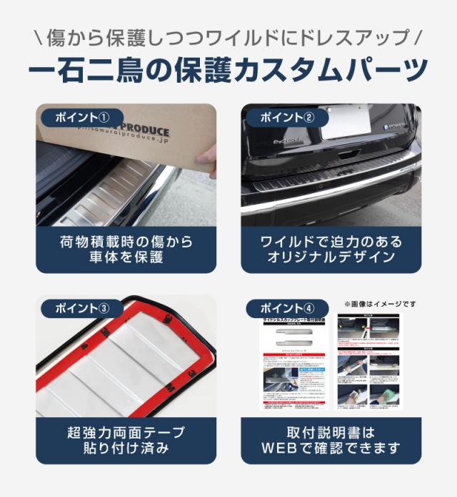 荷物の積み下ろし時に傷付きやすい部分をしっかり守りつつ、ドレスアップ効果でラゲッジスペースをよりスタイリッシュに演出してくれる優れものです!