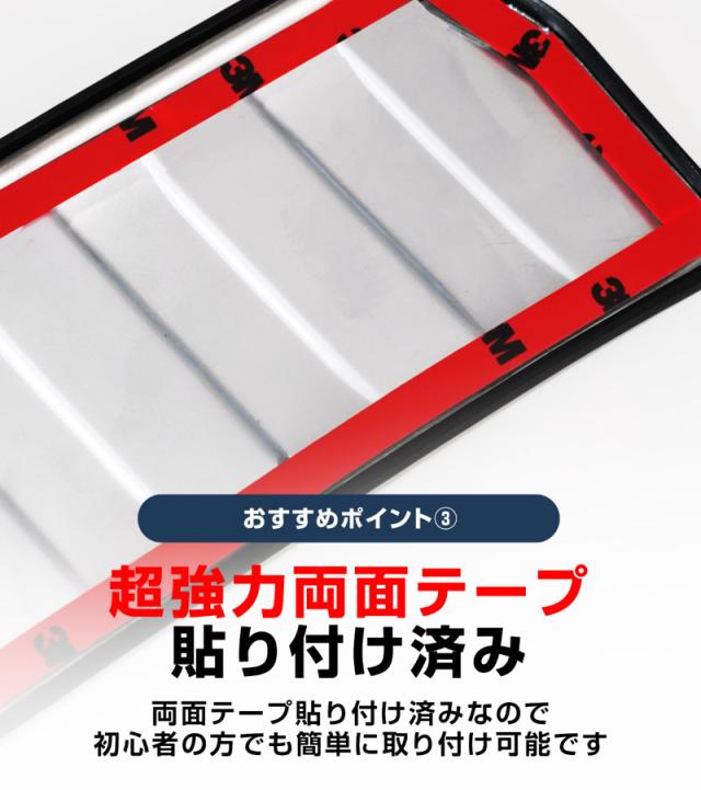 お取り付けは裏面に装着済みの両面テープで貼り付けるだけなので、カスタム初心者の方にも安心しておすすめできるアイテムです。