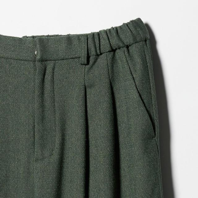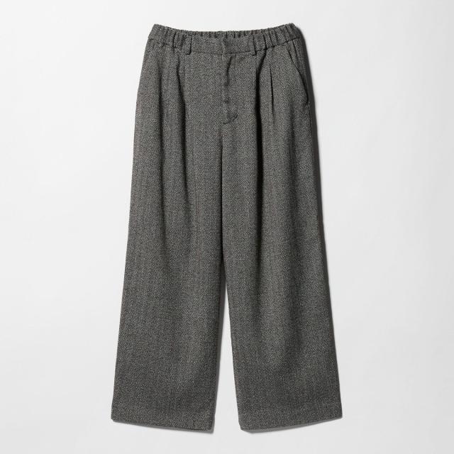 【WEB限定】裏起毛ヘリンボーン タックワイドパンツ ウォッシャブル