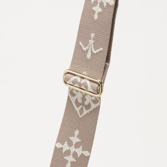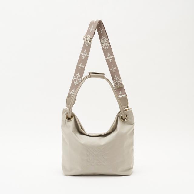 フロントのモノグラム刺繍が、品よく華やかなアクセントに。
