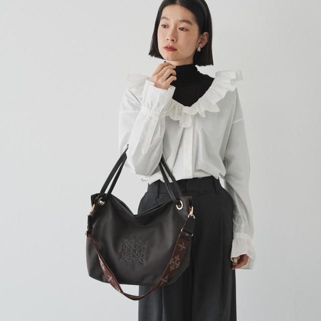 2重にして手持ち、1重にしてワンショルダーと、使い方次第でシルエットの変化を楽しめます。