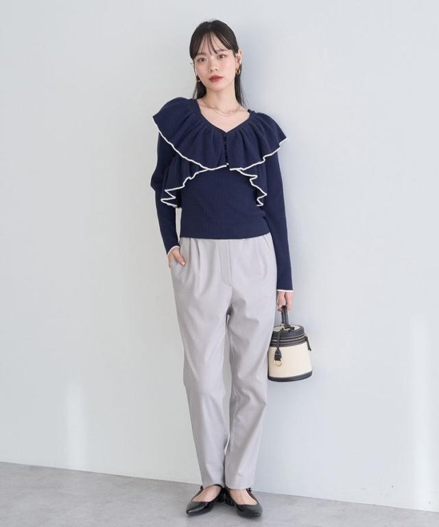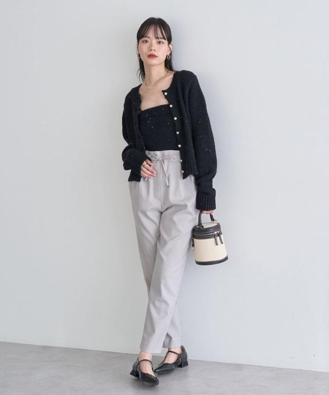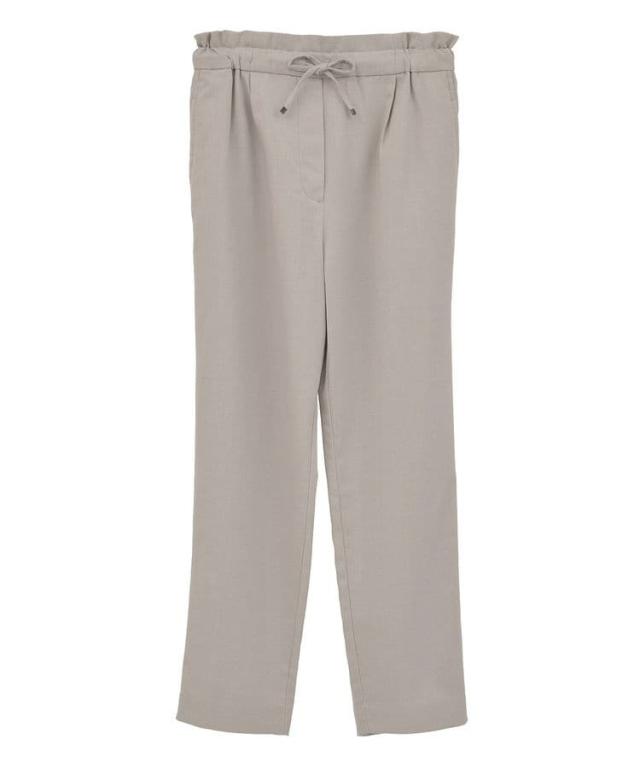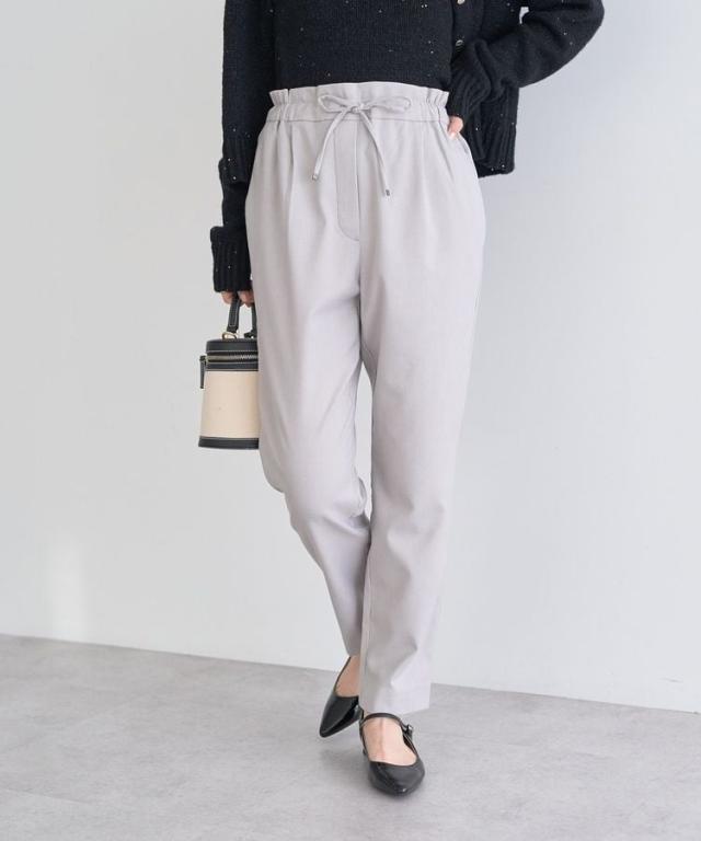 リラクシーな穿き心地ときれい見えを兼ね備えたデザインパンツ。すっきりとしたテーパードシルエットで足のラインも拾いにくく、自然にスタイルアップを叶えます。ウエストはソフトフィットな紐付き総ゴム仕様。裏側起毛の肌触り柔らかな素材で、これからの季節に重宝するおすすめのアイテムです。透け感[なし]