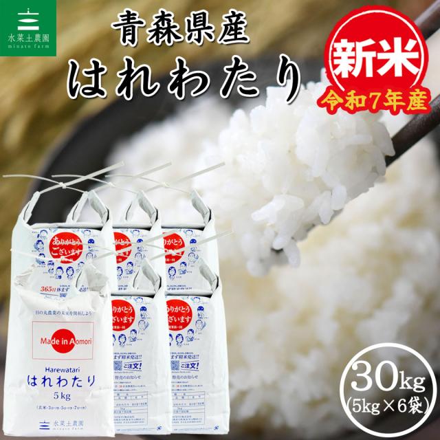 新米 令和7年産 米 お米 30kg (5kg×6袋) 青森県産 はれわたり 白米 精米 送料無料/ 選べるプレゼント付き hw10