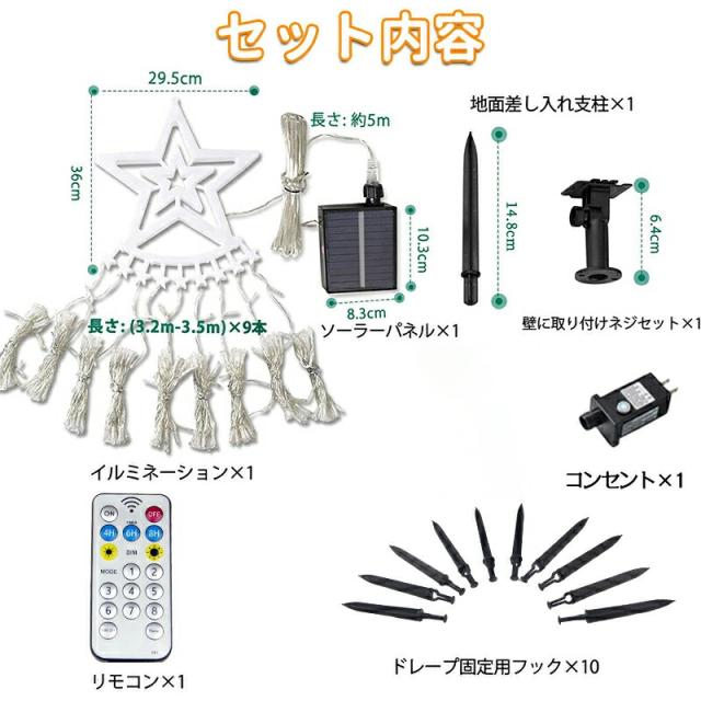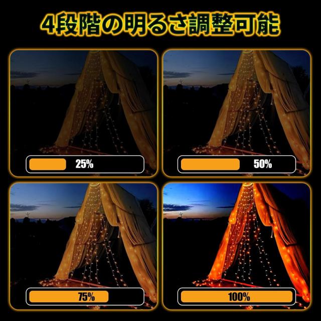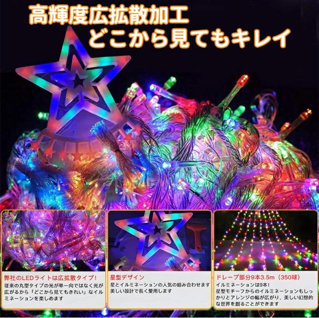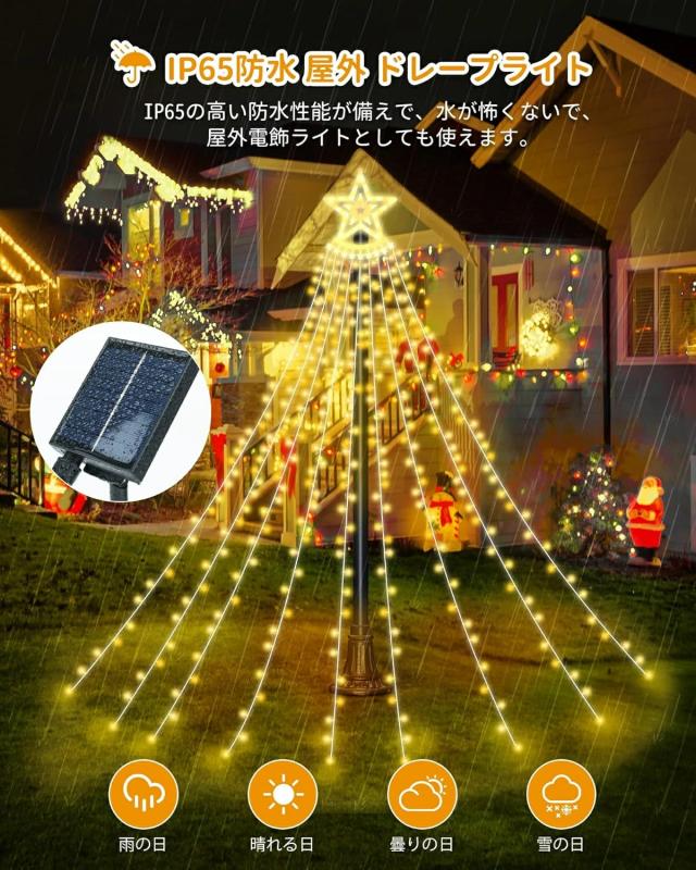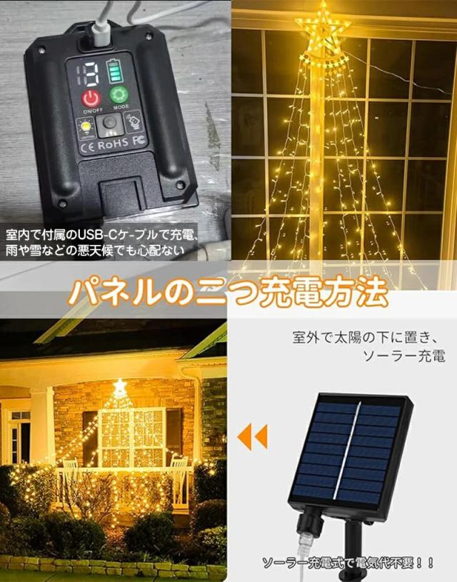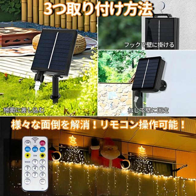 【USB充電・ソーラー式】イルミネーション 屋外 防水 ソーラー LEDイルミネーションライト クリスマス飾り 350LED カーテンライ ト ドレープライト つらら