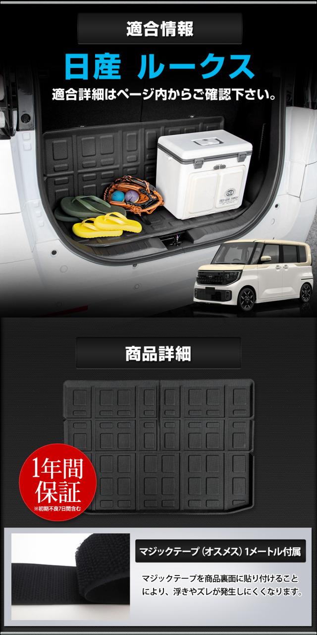 [対象商品10%OFFクーポン発行中]ルークス BB系 専用 3D トランク マット ラゲッジ ラゲージ ROOX 防水 防汚 傷防止 カバー カーマット 内装 日産 [2]