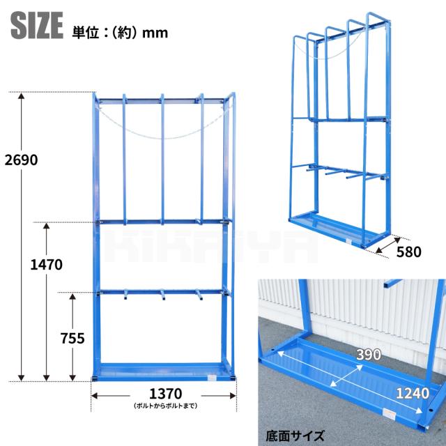 長尺物収納ラック W137×D58×H296cm 保管ラック 立て掛け 資材置き場 スチールラック 棚 業務用 KIKAIYA