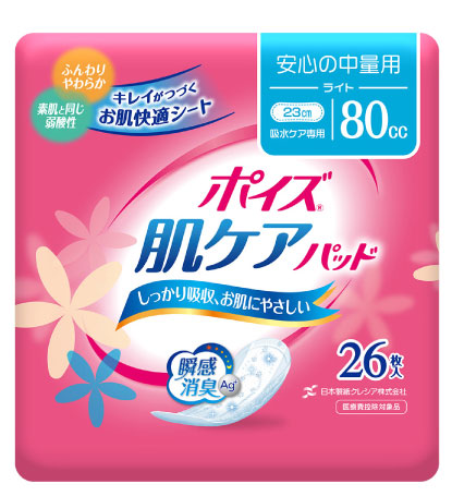 商品名 | ポイズ 肌ケアパッド ライト 安心の中量用 80 cc 26枚入 |