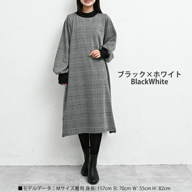 cam-aw-op0647 裏シャギー素材でぬくもりを纏うハイネックワンピース。 大きいサイズ レディース 長袖ワンピース ロング丈ワンピース ロングワンピース ハイネックワンピース Aラインワンピース 裏起毛ワンピース 総柄ワンピース 千鳥格子柄 チェック柄 ハウンドトゥース柄 グレンチェック柄 裏シャギー あったか裏起毛 防寒対策 暖かいワンピース あったかい あたたかい 暖かい ロング丈 ミモレ丈 ミドル丈 ミディアム丈 膝下丈 リブネック ハイネック モックネック 長袖 パフスリーブ ボリュームスリーブ 袖口リブ スパンリブ サイドスリット 秋服 冬服 秋物 冬物 秋ワンピース 冬ワンピース 秋ワンピ 冬ワンピ オーバーサイズ ゆったり ラクラク 体型カバー 大きめシルエット ゆったりシルエット 大人 カジュアル ナチュラル フェミニン 上品 レトロ きれいめ かわいい かっこいい 着こなし おしゃれ お出掛け 定番 秋コーデ 冬コーデ ファッション 大きめ 女性 婦人用 ミセス 30代 40代 50代 2025 冬新作 秋 冬 黒×白 ブラック×ホワイト グレー M LL 3L 4L 5L 9号 13号 15号 17号 19号 cam-aw-op0647