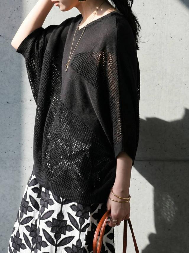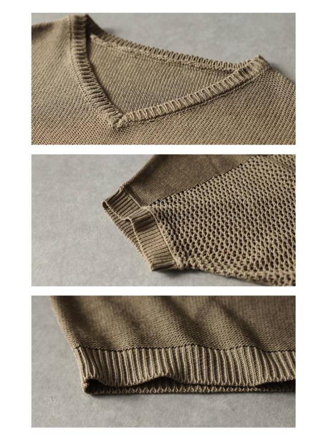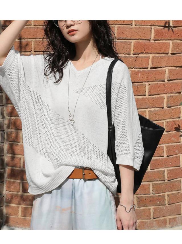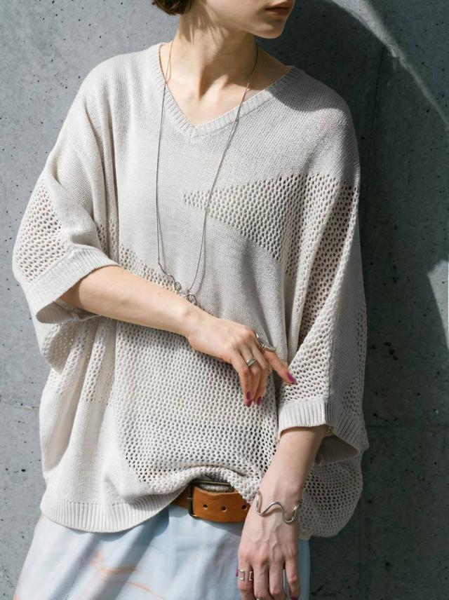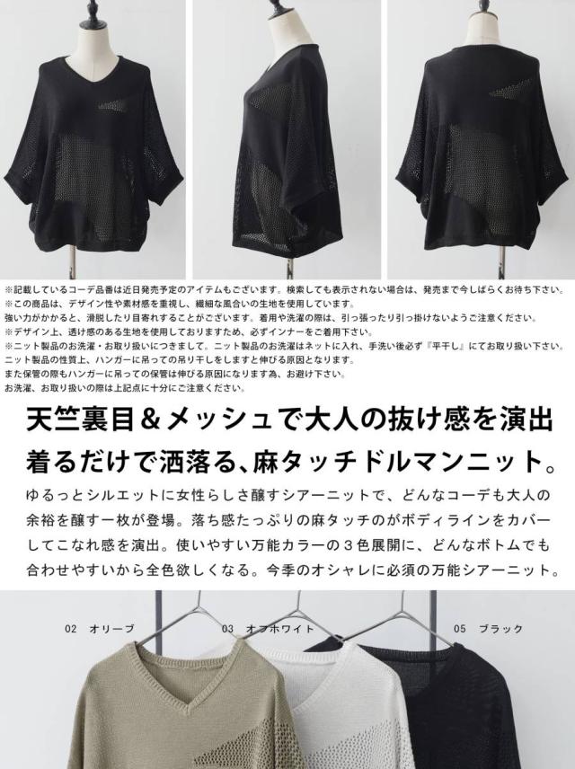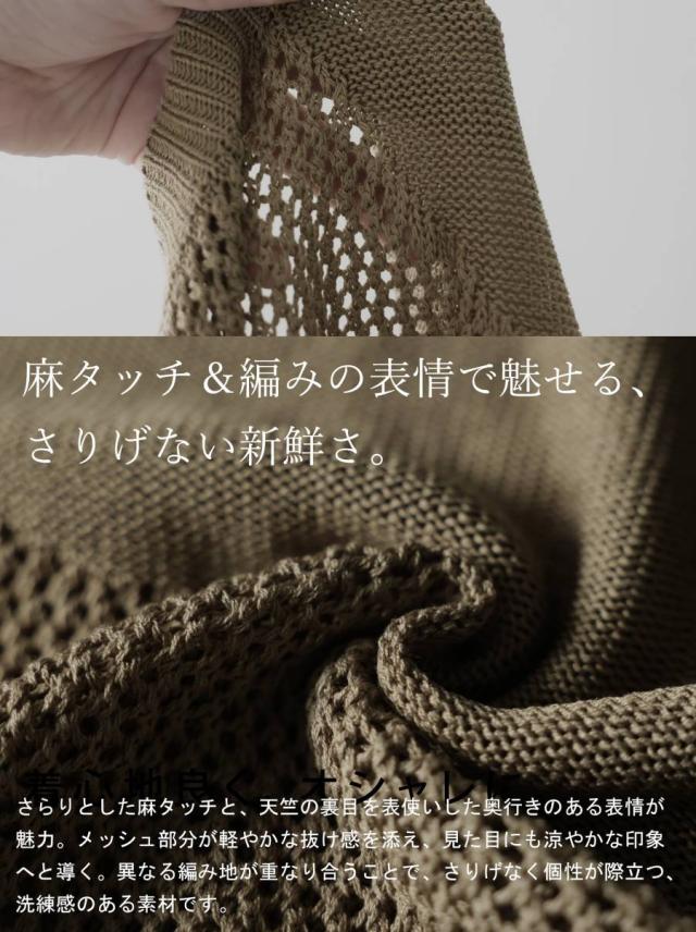 さらっとした麻(リネン)タッチの風合いで、夏らしい抜け感を纏えるメッシュ編みニットです。